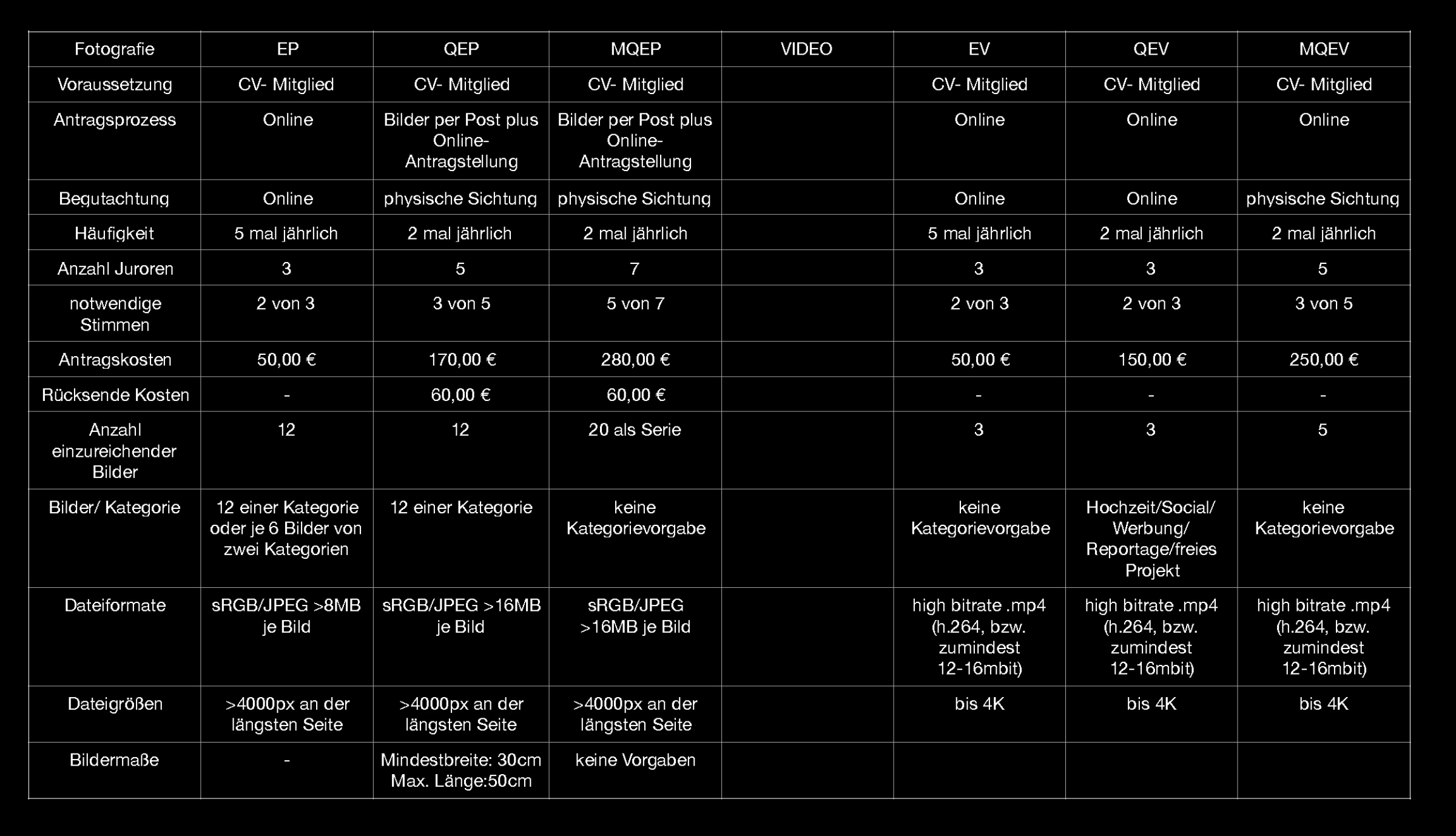 Der FEP verfügt sowohl für Fotografen als auch für Videofilmer über ein dreistufiges Qualifizierungssystem. Weitere Informationen finden Sie hier.